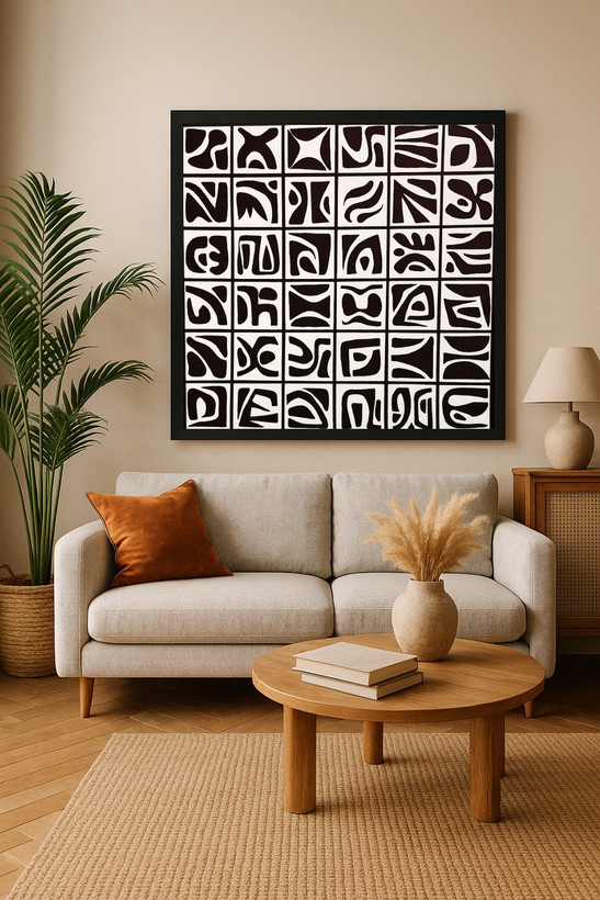 تابلو مدرن دکوراتیو سایز بزرگ اجرا شده روی پارچه بوم سوپر برزنت روسی تکنیک اکریلیک قاب شده و آماده