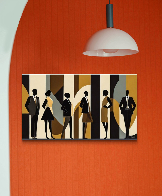 نقاشی آدم های مدرنیته اجرا شده روی بوم باکیفیت سوپر برزنت روسی با رنگ اکریلیک خارجی - وارنیش و آستر خورده است .
