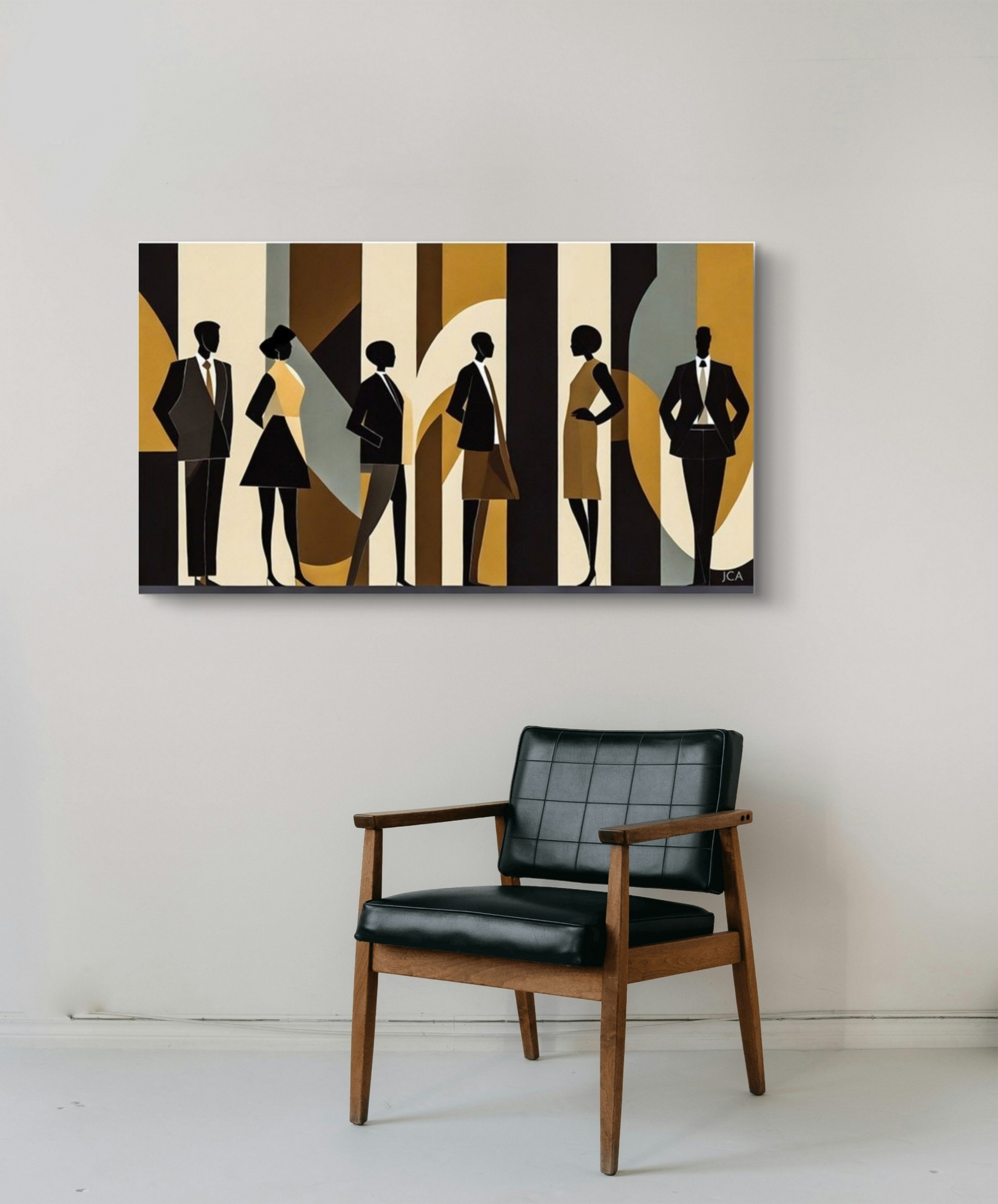 نقاشی آدم های مدرنیته اجرا شده روی بوم باکیفیت سوپر برزنت روسی با رنگ اکریلیک خارجی - وارنیش و آستر خورده است .